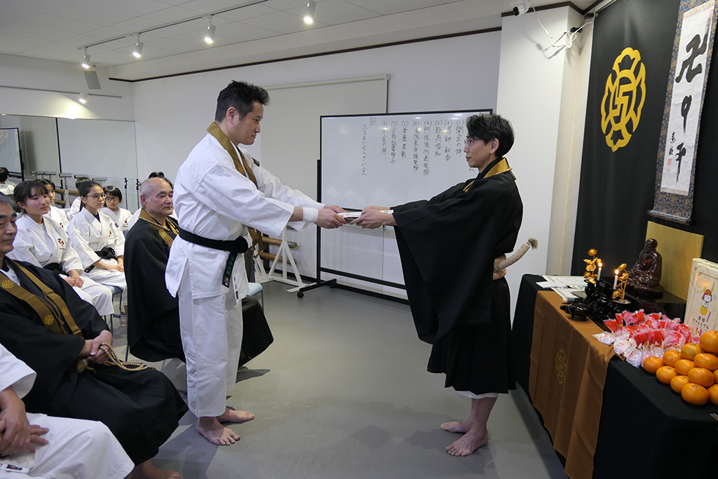 達磨祭の法話が終わったところで、一般拳士の允可状授与式を執り行いました(^^)